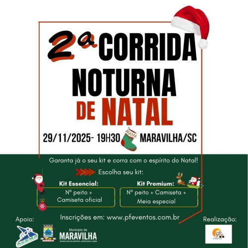 DATA: 29/11/2025 HORÁRIO LARGADA: 19h30 LOCAL: RUA COBERTA MUNICÍPIO: MARAVILHA- SC |