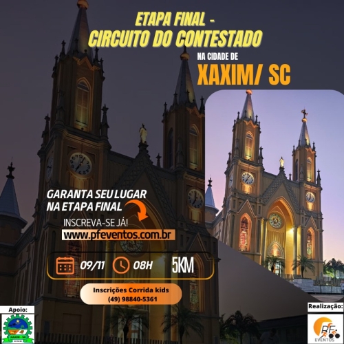 ADULTO: 5 KM (INSCRIÇÕES PELO SITE: WWW.PFEVENTOS.COM.BR ) KIDS: INSCRIÇÕES ANTECIPADAS PELO CONTATO: (49) 98840-5361 (ELINETE) 0 à 5 = 50 metros 6/7 = 100 metros 8/9 = 200 metros 10/11 = 400 metros 12/13 = 600 metros Todas as distâncias serão aproximadamente |